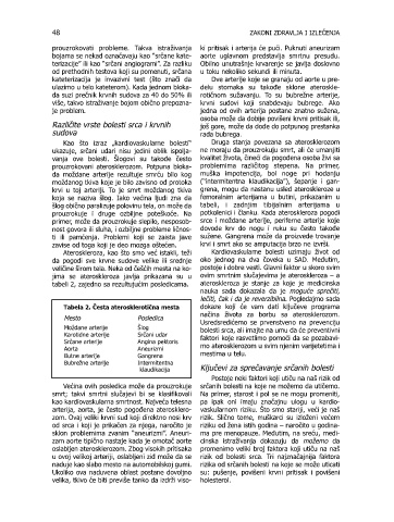 Tabela 2. Česta aterosklerotična mesta dokaze koji će vam dati ključeve programa